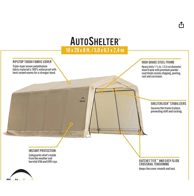 Укључени су компоненте (1) челични оквир са 8 Схелтерлоцк Стеел Стабилизатори (1) Опремљени поклопац са двоструким затварачем Зипперед (1) Чврсти задњи панел (4) 15-инчни Аугер Сидрени упутства за корак по корак
