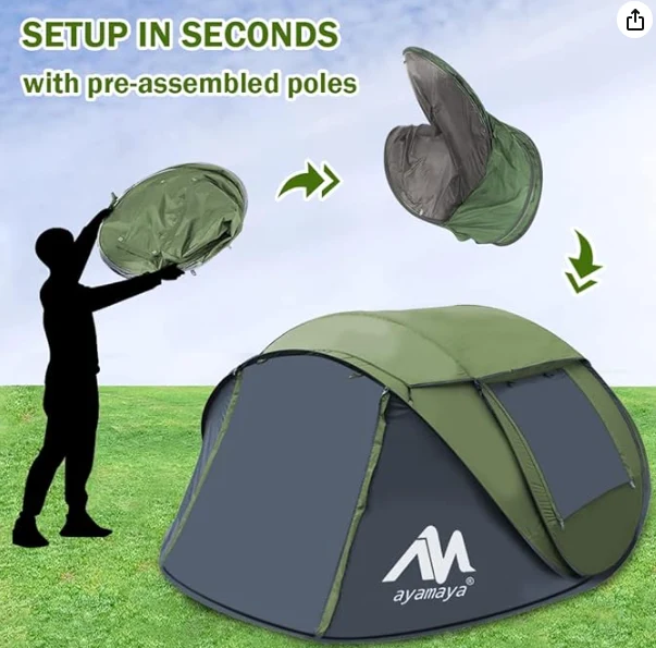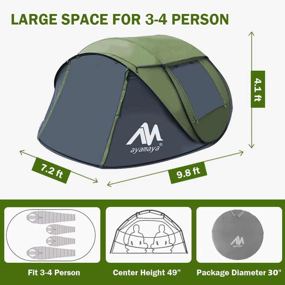 Аутоматско брзо отворено кампинг шатор, 4 особе Појави се за камповање Водоотпорни на тренутни породични шатори са кровом и уклоњивим ранифли, надограђене велике величине са 2 врата -Аутоматска једноставна плажа са мојим шатором