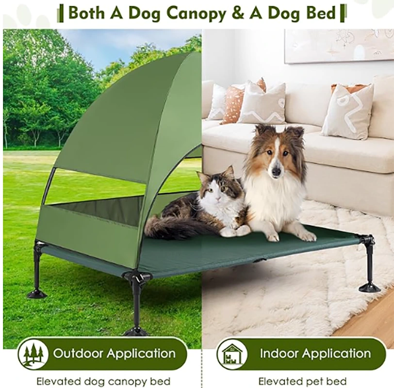 Кревет за псе за мачке са балдахином, надограђени кревет за псе са балдахином, преносиви подигнути кревет за псе на отвореном са стабилним стопалима против клизања, креветац за кућне љубимце шире сенке, подигнути кревети за псе за камповање великих паса, употребу у затвореном и на отвореном.