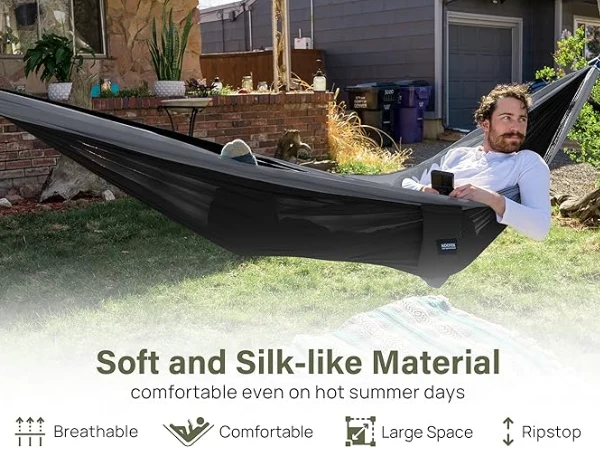 Лагано кампирање Хамммоцк Перфецт комбинација трајности и удобности. Било да кампирате, планинарење, на плажи или се једноставно опуштате на вашем поплочаном постољу, нашим висинама су идеалан додатак који ће вам помоћи да се одморите и опустите у крајњем комфору.