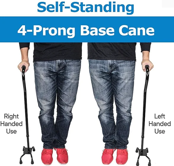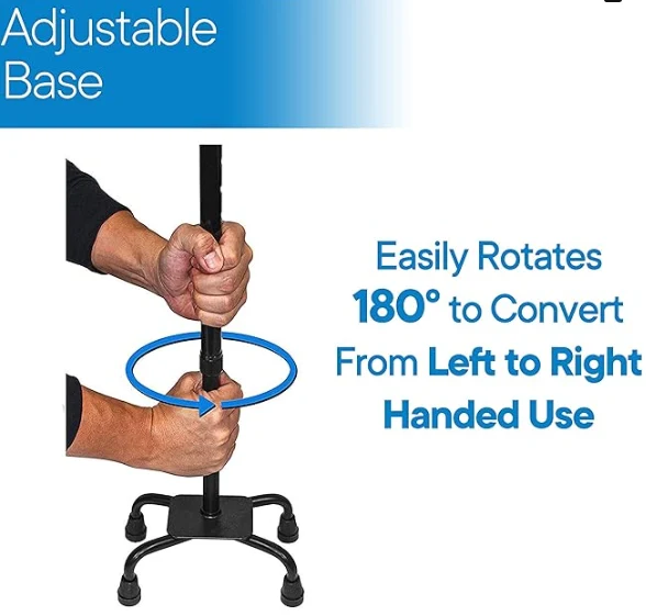 Старац Медицински трски, сваки пронг је прекривен антиклизним гуменим трском савјетом за додатну стабилност и сигурност. Куад база чини је самосталном трском која елиминише пада или пада на под. Савршено за операцију након операције када се не можете савити или достићи.