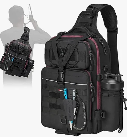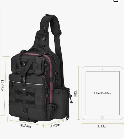 Одвојиве траке за раме олакшавају употребу ове торбе као шлизну торбу за рамена, руксацк, торба, торба, торба за грудњак, торба за риболову или путујућу торбу. Са два шипка за задржавање шипки, главна дужина каишева може се продужити до 51,2 '', док се придружите каиш може продужити на 36,2 ''
