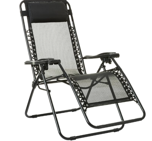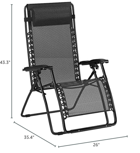 Превелика лежаљка кампинг кампинг, модерно подесива канцеларија на отвореном на отвореном савијањем нула гравитационе наслона која се може подесивати са јастуком. Превелико наслоњено кампирање, подесива нулта гравитација спољне столице у црном нуди безтежни осећај за оптимално опуштање, основе вањских текстилена подесива нулта гравитација преклопљено наслоњено салонским предсједавајућим јастуком, 26 ", црно