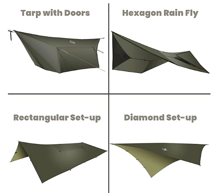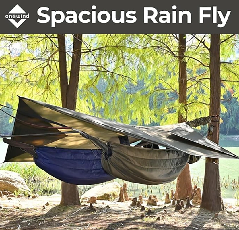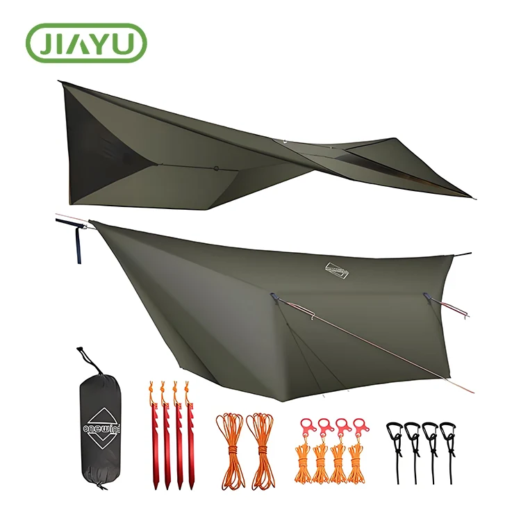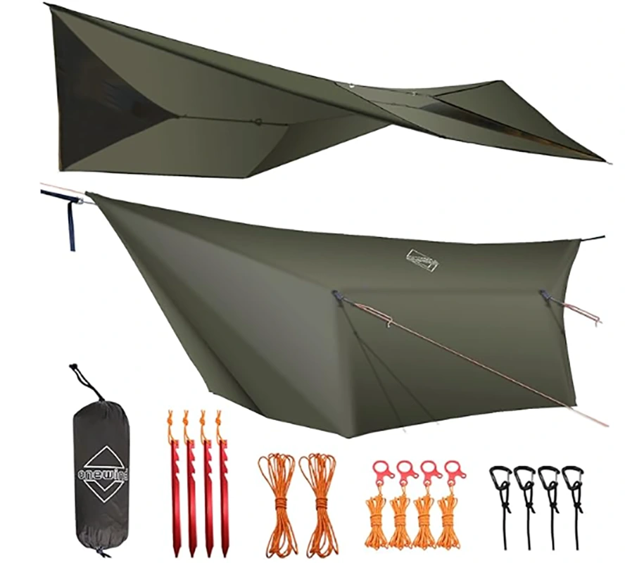 Преносива водоотпорна висећа мрежа за камповање пружа одличну заштиту од елемената - кише, сунца, УВ зрака и ветра. Направљен је од 1.1оз 20Д рипстоп силнилона који је третиран силицијумом/ПУ 4000мм што чини материјал водоотпорним.